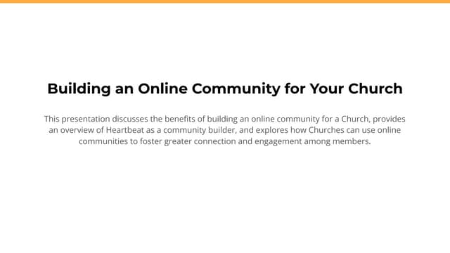 - Building a community for your Church